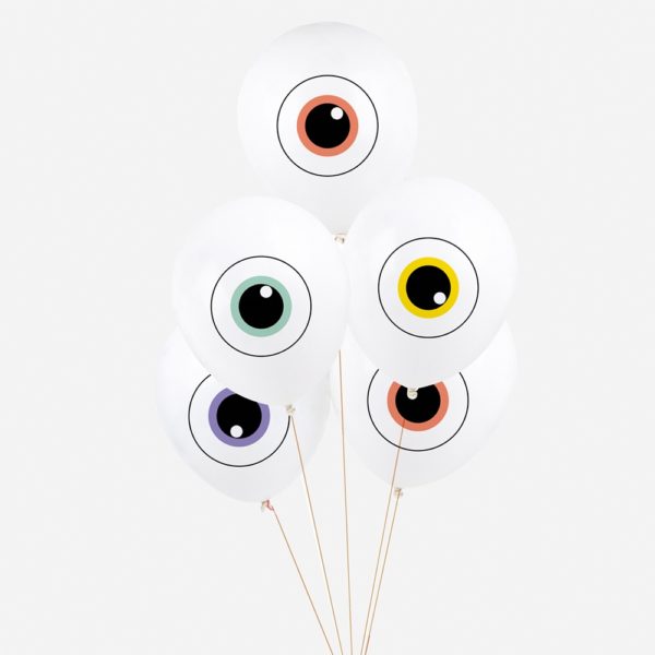 Booooooh ! It’s Halloween, time to let out the skeletons and the living dead, to give way to fear! Trick or treat? 5 balloons covered with giant eyes! 5 balloons scary and pastel ! The eye balloons are 100% latex, designed in Paris and responsibly manufactured in Europe.